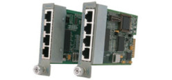 Das Managed-Ethernet-Switchmodul iConverter 4Tx VT 10/100 gehört zur modular aufgebauten iConverter-Produktfamilie. Es bietet einen kompakten 4-Port-10/100-Ethernet-Switch, der sich mit den iConverter 19-Modul-, 5-Modul- und 2-Modul-Chassis-Leiterplatten erweitern lässt, aber auch mit dem iConverter 1-Modul-Chassis als eigenständiger Switch unterstützt wird.