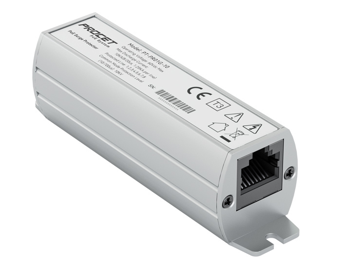 PT-PR01G-OT is a single-port PoE surge protector designed for exterior complex backhaul and networking applications with an IP 67 rated Aluminum alloy shell. It supports 8 lines network signals and provides surge protection for PoE wires. 10KV surge protection and four Level protection for SPD technology. Peak Surge Current up to 20KA. It supports 10/100/1000Mbps of data rates. Ideal for 60W(max) PoE wires and well protects your devices against surge damage.