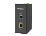 PT-PSE105G-E is a Industrial Din-rail PoE injector with 2 Pair PoE up to 30 watts of power at 55Vdc, at 0.55Amp with 6Kv surge protection.