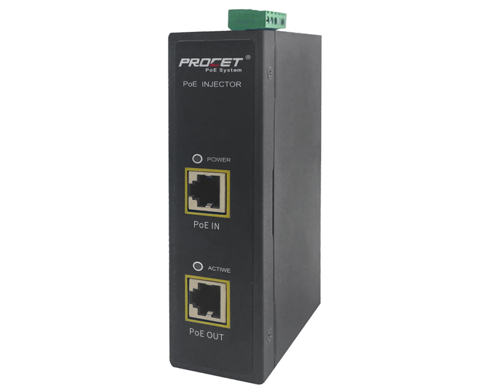 PT-PSE105GW-E is a DIN Rail Gigabit PoE Injector with 4 Pair PoE up to 60 watts of power at 55Vdc, at 1.1Amp with 6Kv surge protection.